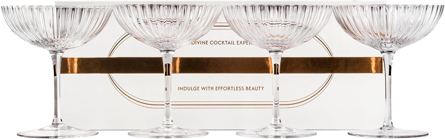 • DIVINE GIFT – every set of 4 crystal coupe glasses comes neatly packed in our luxurious gift box, which shares a few of our favorite cocktail recipes on the back for your next cocktail party! Perfect gift idea for birthday, anniversary, wedding, housewarming, and bachelorette party.